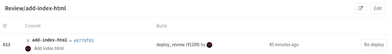 In our minimal example, we name the environments review/$CI_BUILD_REF_NAME